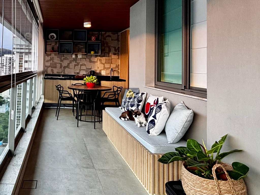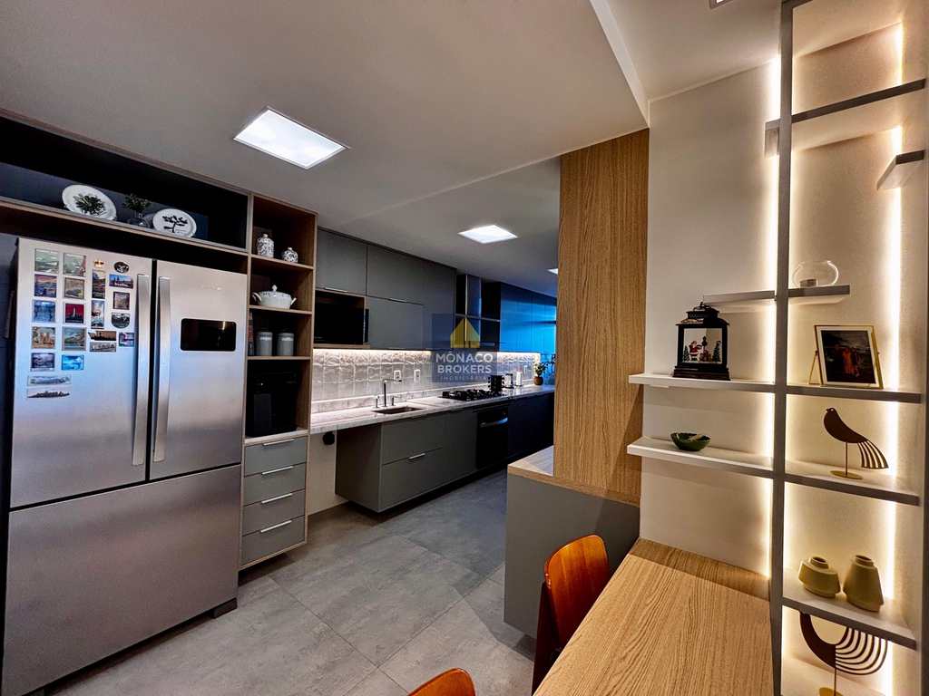 O imóvel conta com 3 quartos, sendo 2 suítes, além de um banheiro social. A sala espaçosa em dois ambientes se integra harmoniosamente à varanda gourmet estendida, ideal para momentos de lazer e confraternização. O diferencial fica por conta da cozinha integrada ao ambiente, proporcionando praticidade e um toque moderno ao espaço. Além disso, há um lavabo social e uma funcional área de serviço.