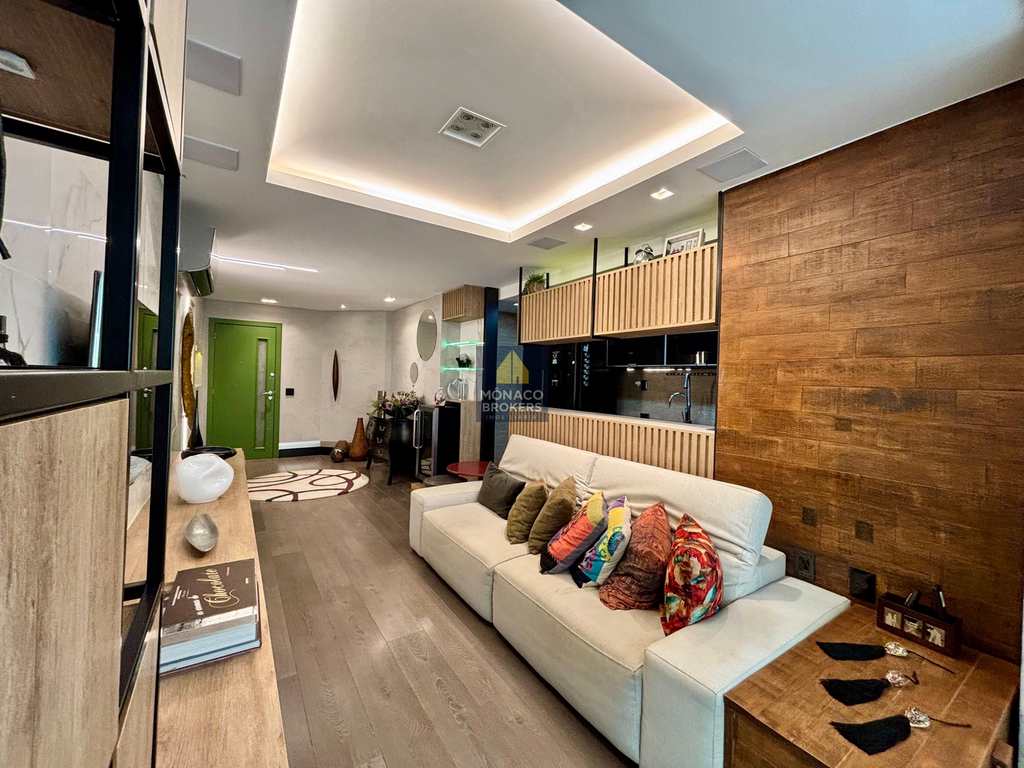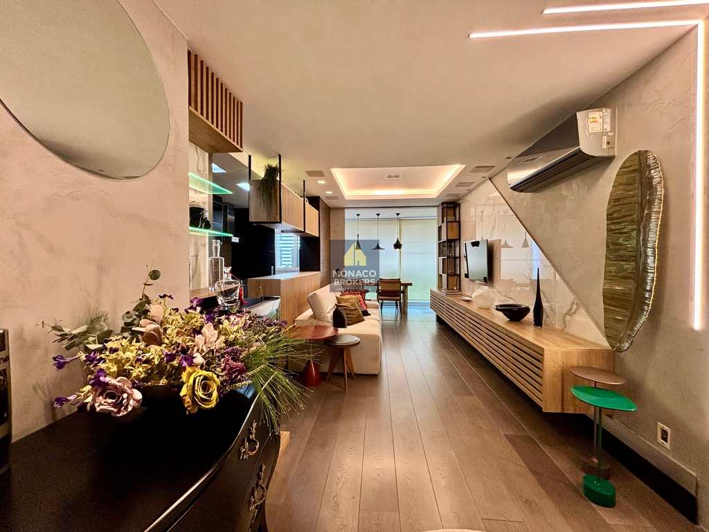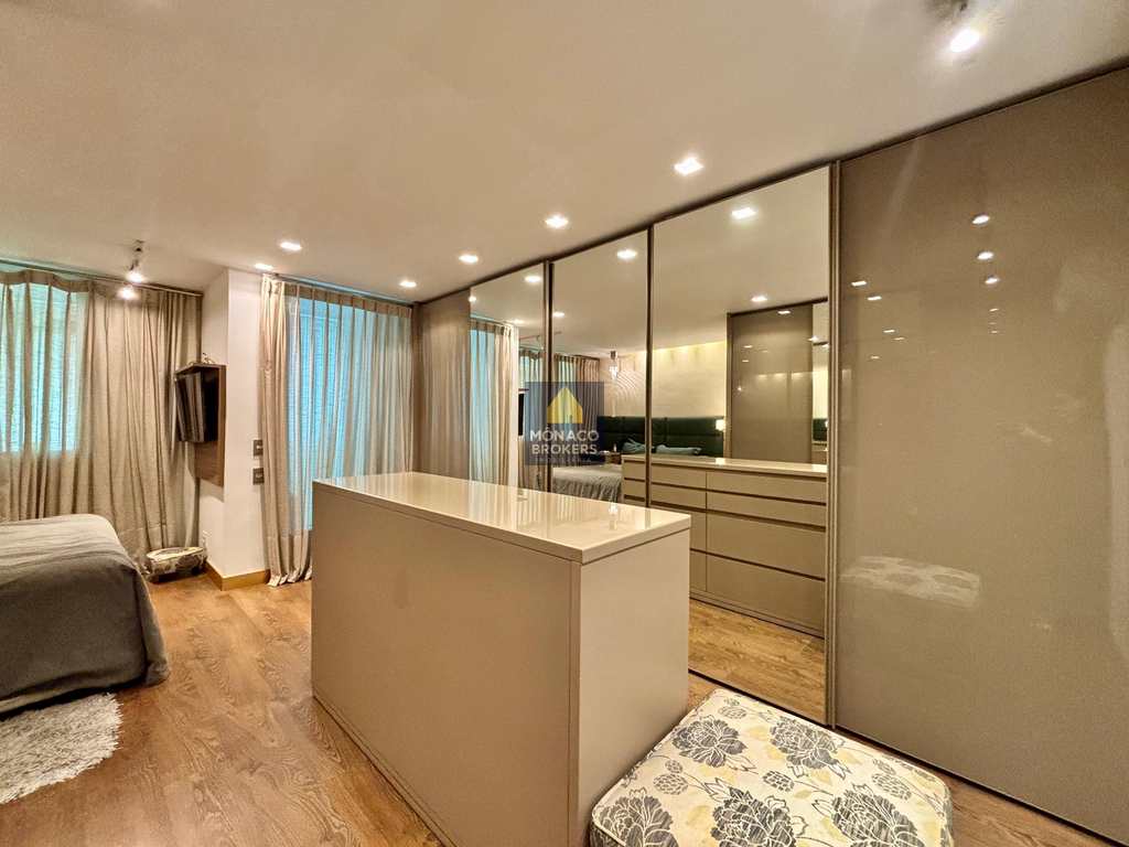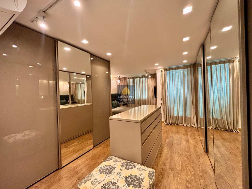 Com planta otimizada e ambientes integrados, o imóvel foi transformado em uma suíte máster ampla e sofisticada, onde o descanso encontra o design. O living generoso se conecta à varanda integrada — com cortina de vidro e persianas termoacústicas — criando um espaço acolhedor e perfeito para receber com estilo.