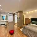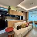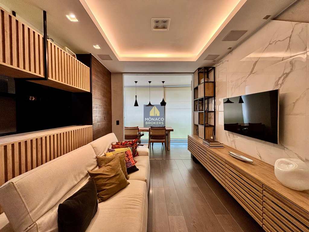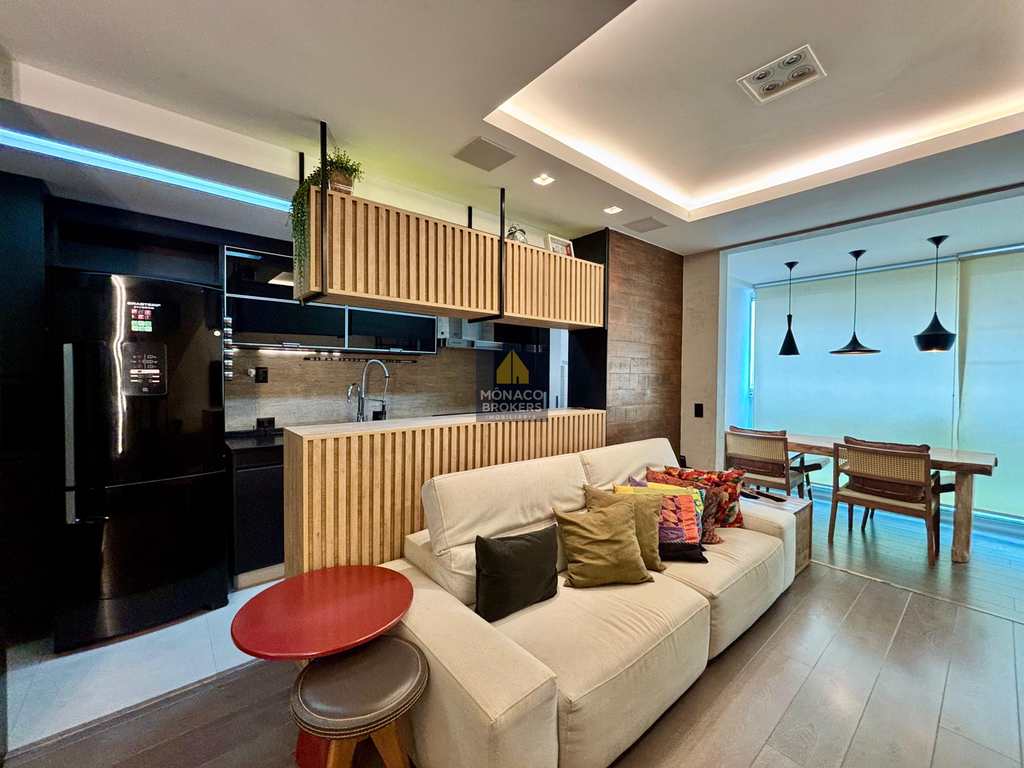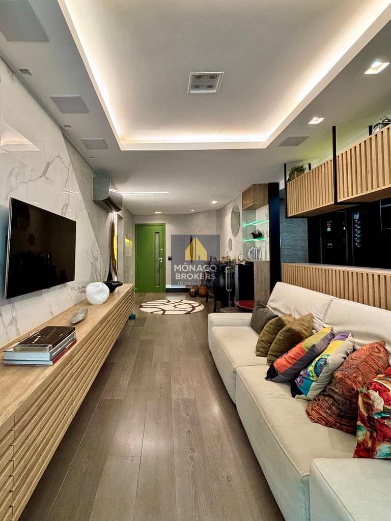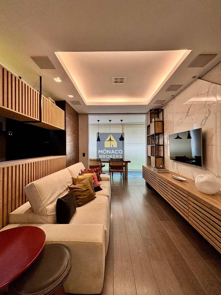 Com planta otimizada e ambientes integrados, o imóvel foi transformado em uma suíte máster ampla e sofisticada, onde o descanso encontra o design. O living generoso se conecta à varanda integrada — com cortina de vidro e persianas termoacústicas — criando um espaço acolhedor e perfeito para receber com estilo.