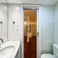 No segundo pavimento, o apartamento oferece três quartos amplos, sendo duas suítes com sacada, além de um banheiro social.