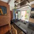 Sala com dois ambientes  em tábua corrida, aconchegante e perfeita para reunir amigos e familiares e cozinha integrada.