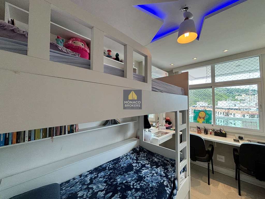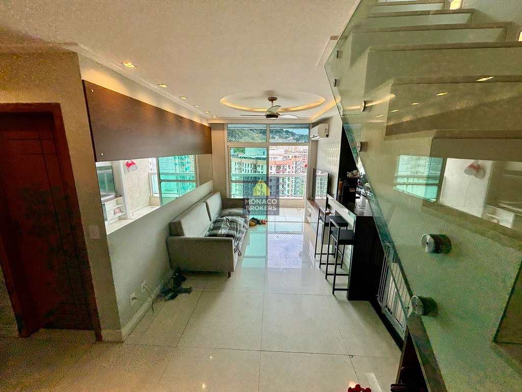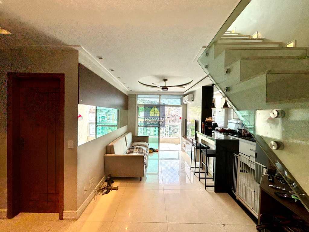 Cobertura com 3 quartos, sendo 1 suíte, 3 banheiros, sala, cozinha americana, armários planejados e splits.